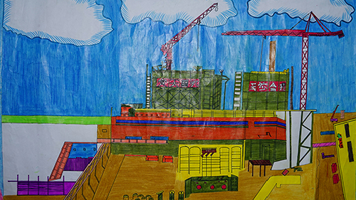 艺术无国界。高耸的铁塔、碧蓝的天空、长臂起重机……