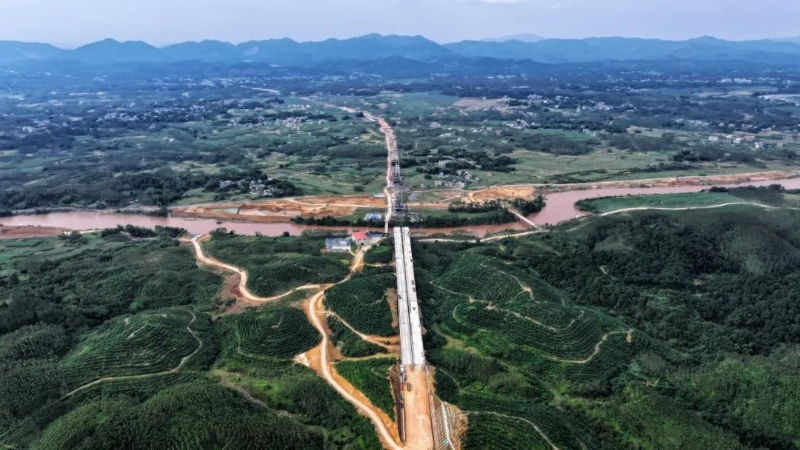 自开工建设以来,项目以现场组织工厂化,提升施工生产质效。建设智能化钢筋场,实现钢筋统一加工、配送管理,有效促进施工质量和生产效率提升;建设集中混凝土拌合站,实现混凝土商业模式生产;建设预制场,实现结构物工厂化生产;现场组织工厂化,混凝土构建预制安装,路面层摊铺等现场施工均形成流水化作业,有效保证了项目工期和质量。