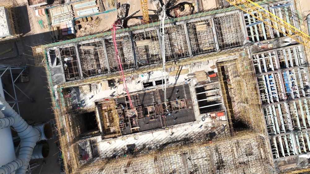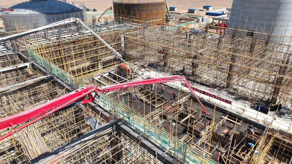 记者采访获悉,该项目由中国能源建设集团投资有限公司投资建设,于2024年5月开工,计划2027年6月完工。本次浇筑的汽轮机基础是光热电站核心结构,投运后需承载数千吨设备重量及高频振动荷载。本次浇筑混凝土方量600立方米,属于大体积混凝土浇筑,基础需嵌入大量预埋件、螺栓孔,施工精度直接影响设备安装定位,施工已于7月16日完成。项目地处哈密市巴里坤哈萨克自治县的一处戈壁上,建设环境恶劣,气候变化大,交通不便,生产生活物资供给困难,年施工窗口期仅7个月。经过克服风沙侵袭、严寒酷暑等多重考验,历时数月的精细筹备,目前施工正按计划稳步推进,整体工程有序铺开。