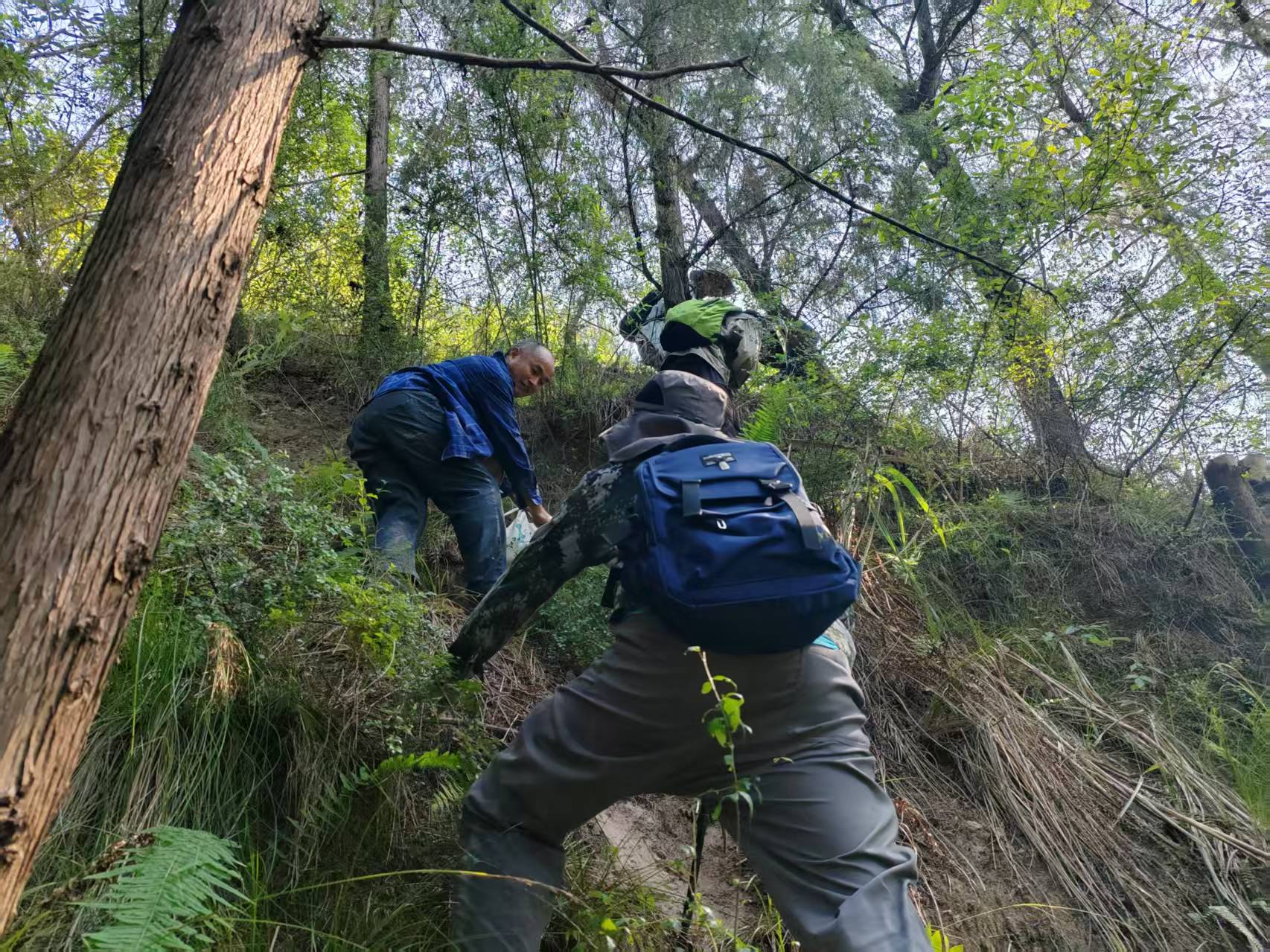 当晨光渐转为炽烈的日影,队员们已挺进丘陵腹地,陡峭山坡成为新的“试炼场”。全线地形为山地与丘陵,茂密的灌木与交错的藤蔓构筑起天然屏障,每一步都需要奋力挥刀开辟。
